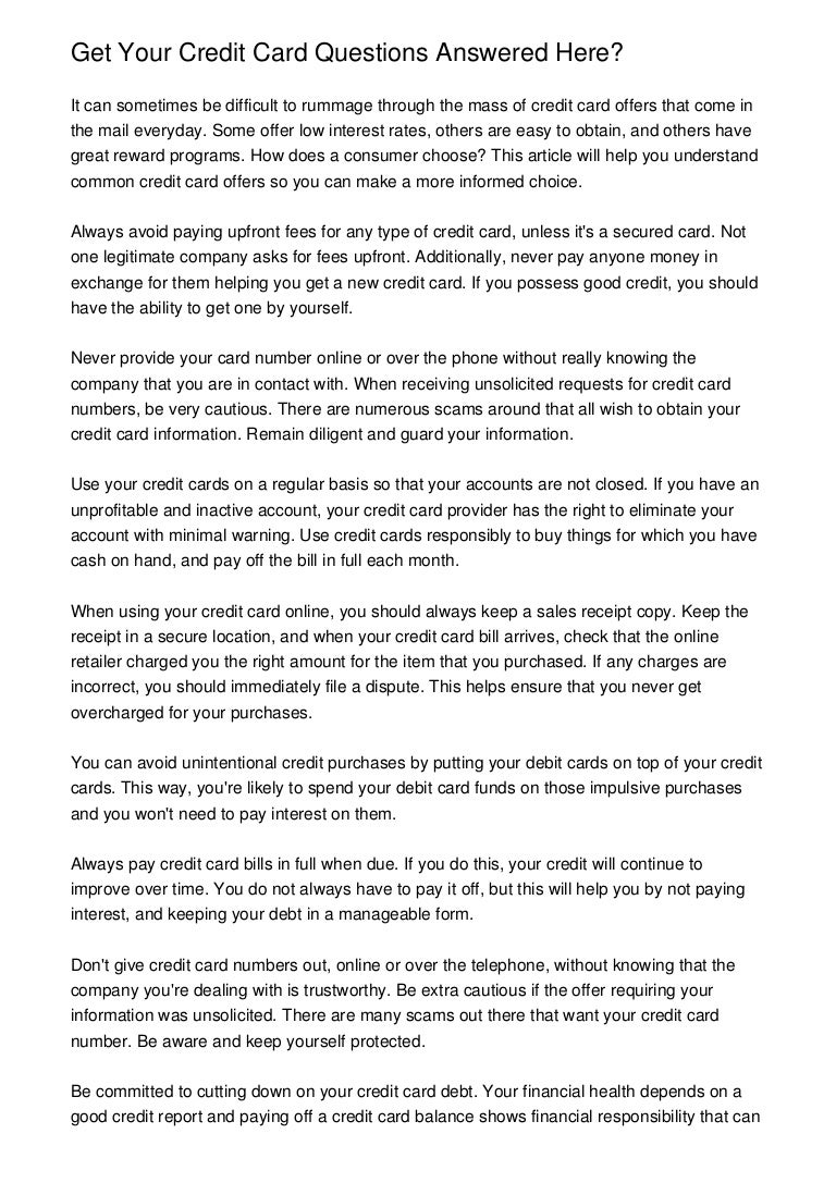 Otherwise, your next credit card statement will include an interest charge applied to the unpaid amount. Therefore the issuance of an interest free credit card will never be the best option. Understanding how interest is accrued on the card can help you understand more about how your payments are being applied and help you pinpoint methods for paying off your cards. If you really want to be diligent and avoid any possibility of paying interest charges, you should pay off new purchases on your credit card as you make the purchases. You can find the details of your credit card grace period in your billing statement. Pay off your monthly balance in full the simplest way to avoid paying interest on your credit cards is to simply pay your bill off in full every month. The grace period for payments on most credit cards means you pay no interest charges as long as you pay the full amount that appears on your account statement each month. Pay your balances in full each month if you don't think you can manage the steps above, then all you have to do to avoid credit card interest payments is to pay your credit card balances off every month. If you do not make your credit card payments on time, you can be hit with a late fee. Pay the bill on time So long as you don't carry a balance over from month to month, ideally, you should never pay an interest charge. Pay off your balance completely within the grace period and you can avoid paying any interest on your credit card. If you want to avoid paying interest on your credit cards by transferring the balances to a balance transfer card that offers a 0 percent intro apr, bankrate's balance transfer calculator can.